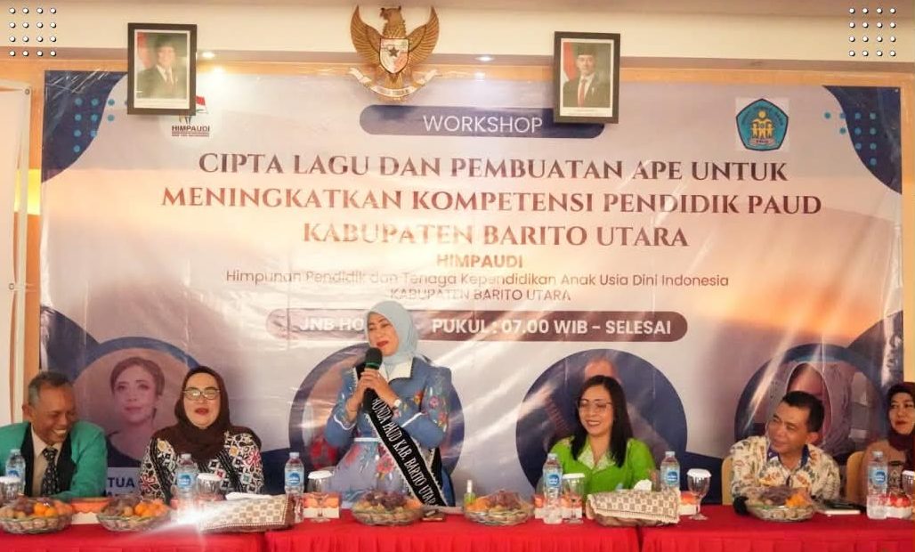 Kegiatan yang diikuti pendidik PAUD se-Kabupaten Barito Utara ini menghadirkan Danang Rusmanto, pencipta lagu anak nasional, sebagai narasumber utama. Workshop ini bertujuan membekali pendidik dengan keterampilan mencipta lagu anak yang edukatif serta kemampuan membuat APE yang kreatif, aman, dan kontekstual, dengan memanfaatkan bahan sederhana serta potensi lokal.