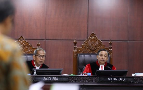 Ketua MK Suhartoyo dan Wakil Ketua MK Saldi Isra di Ruang Sidang MK. Foto Humas/Ifa.