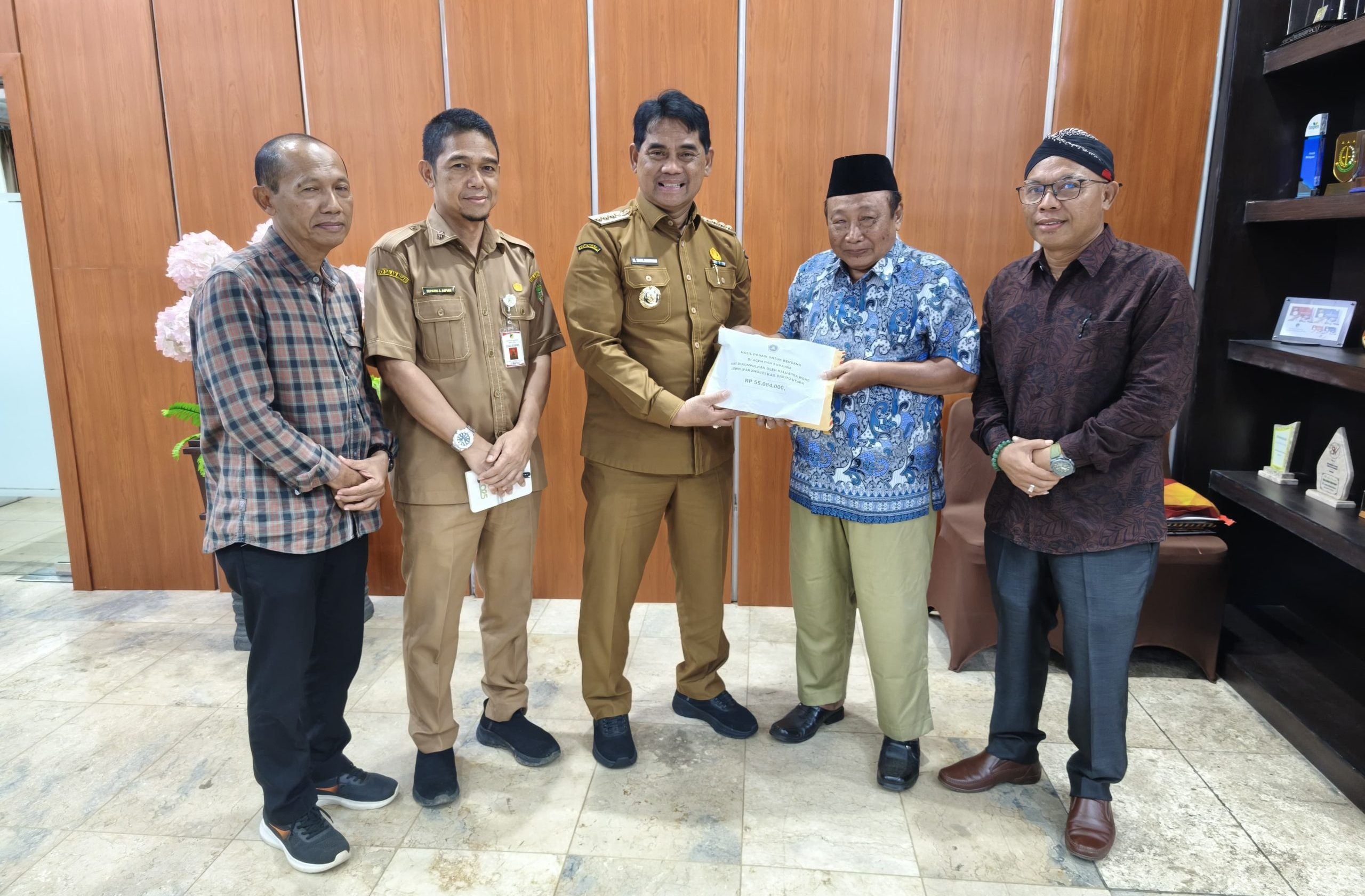 MUARA TEWEH – Paguyuban Kulowarjo Wong Jowo (Pakuwojo) Kabupaten Barito Utara menyalurkan bantuan kemanusiaan senilai Rp55.084.000 untuk korban bencana alam di Aceh dan Sumatera. Bantuan tersebut diserahkan kepada Bupati Barito Utara H. Shalahuddin di Kantor Bupati setempat, Selasa (23/12/2025).