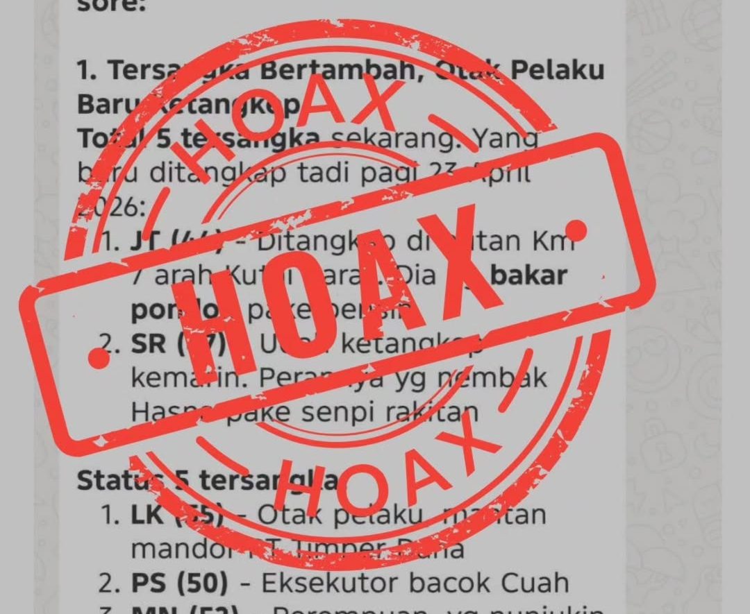 MUARA TEWEH – Kepolisian Resor Barito Utara memastikan bahwa informasi yang beredar luas di media sosial terkait “update terbaru kasus pembunuhan 1 keluarga Benangin per 23 April 2026” adalah tidak benar alias hoaks.
